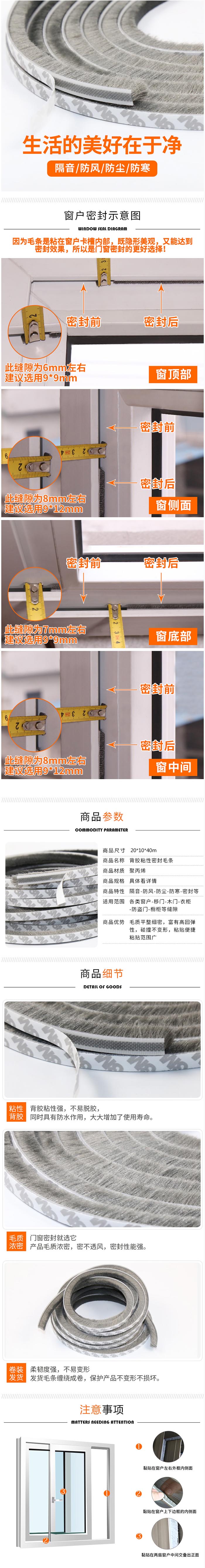 鋁合金門窗密封條塑鋼窗戶保溫隔音自粘型玻璃木門縫防風(fēng)保暖毛條20*10*40M